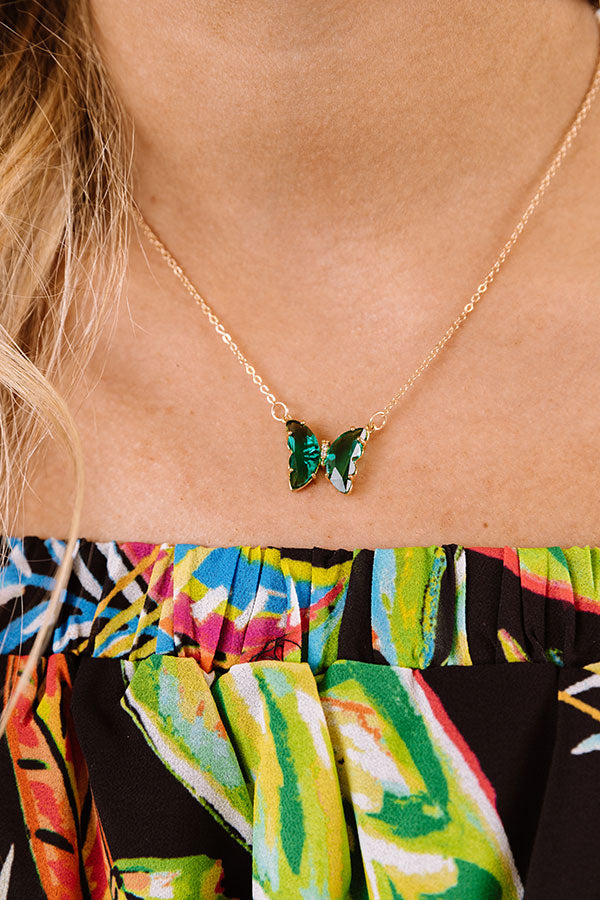 Liven you you OOTD by accessorizing with our adorable 'Miracle Way Necklace' featuring a dainty chain with a an emerald butterfly charm!