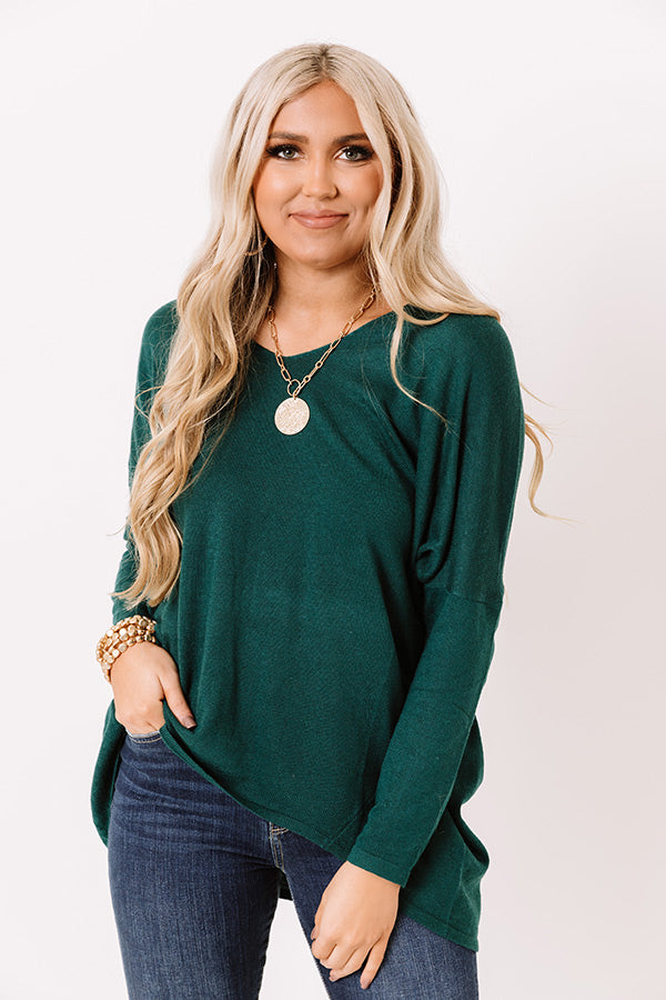Bye warm weather...we'll miss you, maybe! Take in the beauty of the season while donning all your favorite hues in this hunter green cotton sweater with its a relaxed v-cut neckline that can easily be taken off one shoulder, long fitted sleeves, and a relaxed bodice with a rounded high-low hem! Measurements