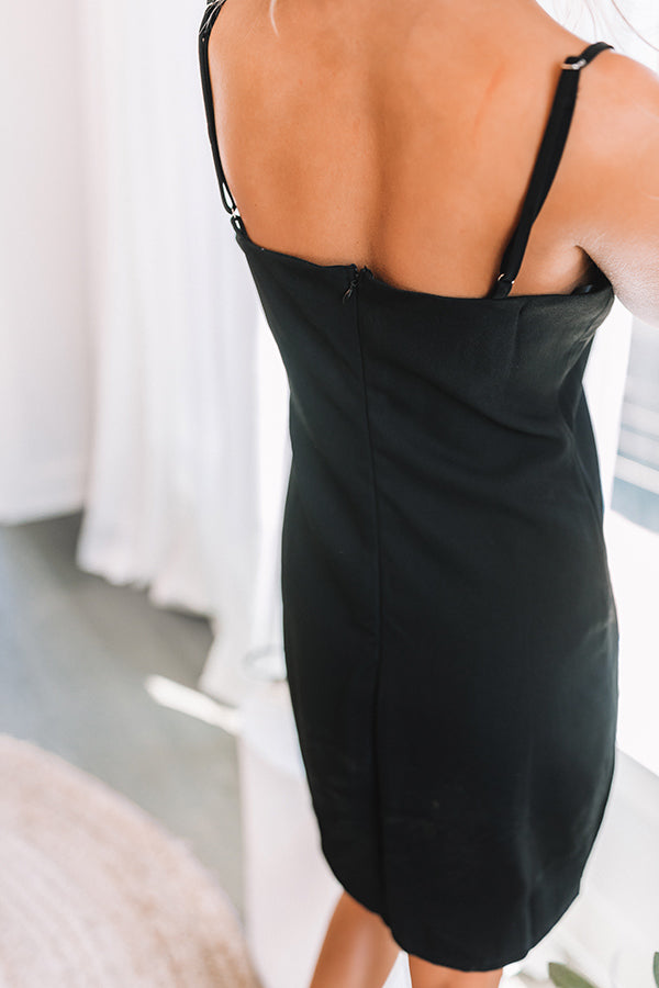 Dance to the beat of your own tune with our flirty little black 'Mixtape Queen Dress' featuring lightweight material a v-cut neckline with adjustable spaghetti straps, a zip closure back, and a flattering figure hugging silhouette that ends in a straight mid-thigh length hemline with accent side slits! Measurements