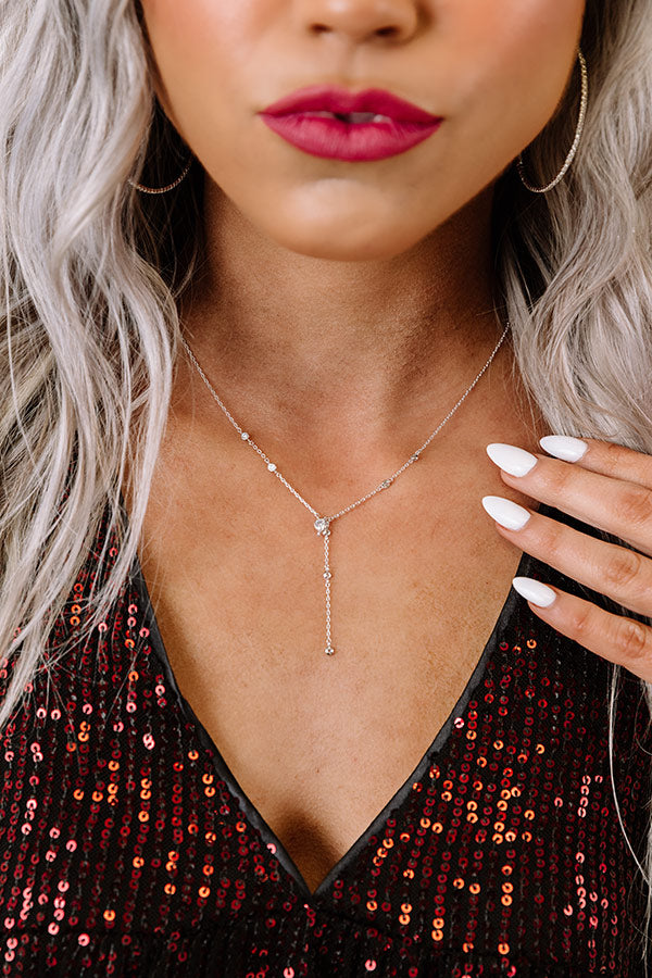 You are sure to charm those around you when you accessorize with our adorable 'Mod Squad Necklace' featuring a dainty silver Y chain with tiny subtle rhinestone accents!