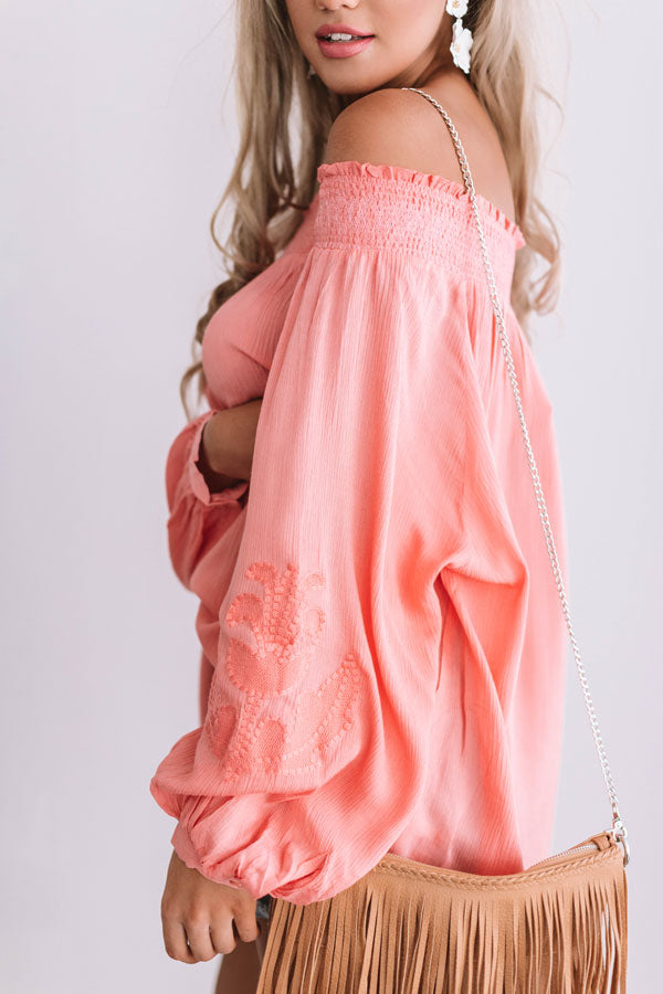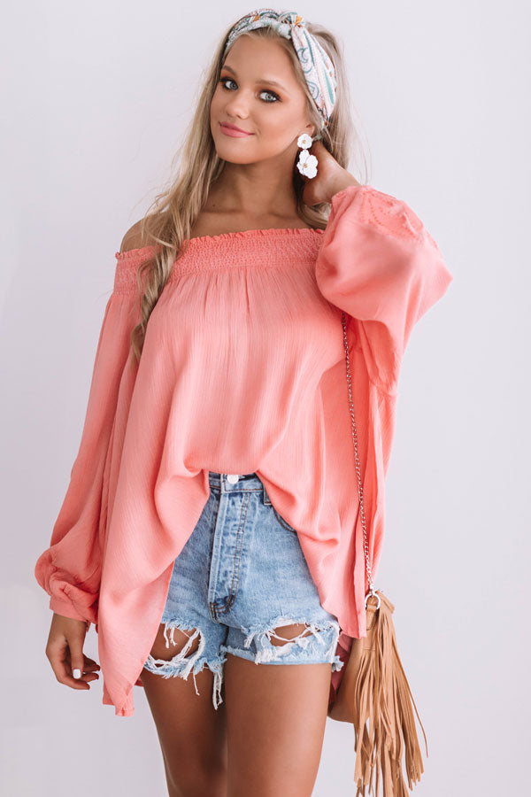 Mojitos In Mykonos Off Shoulder Top In Coral