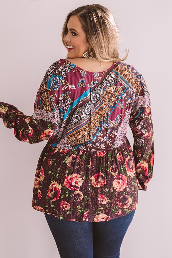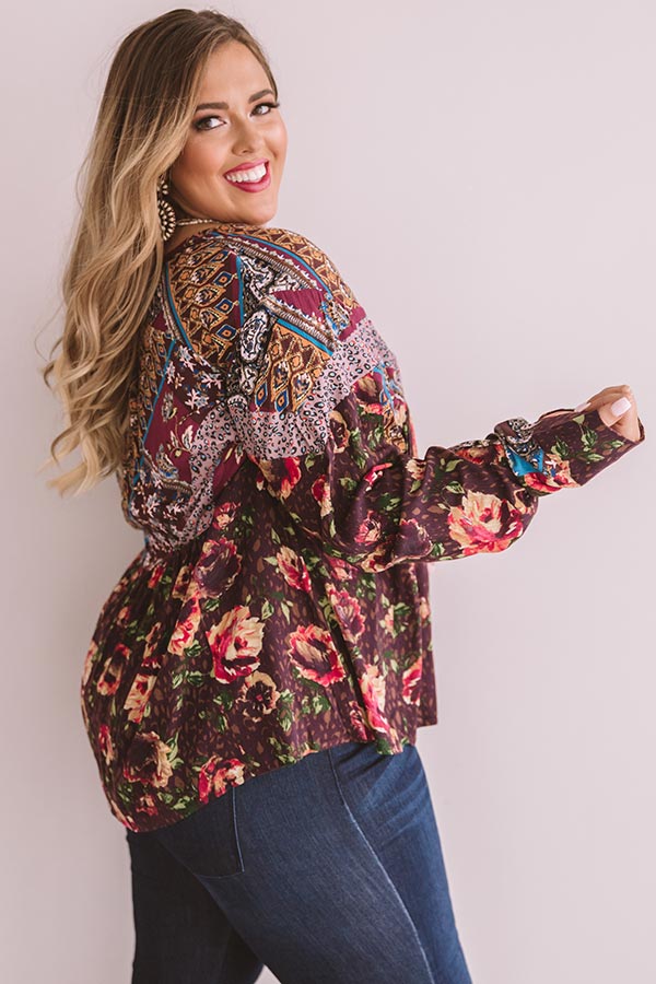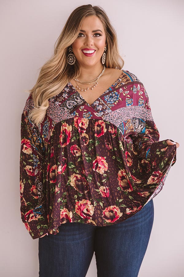 Moment Of Bliss Floral Shift Top In Windsor Wine Curves