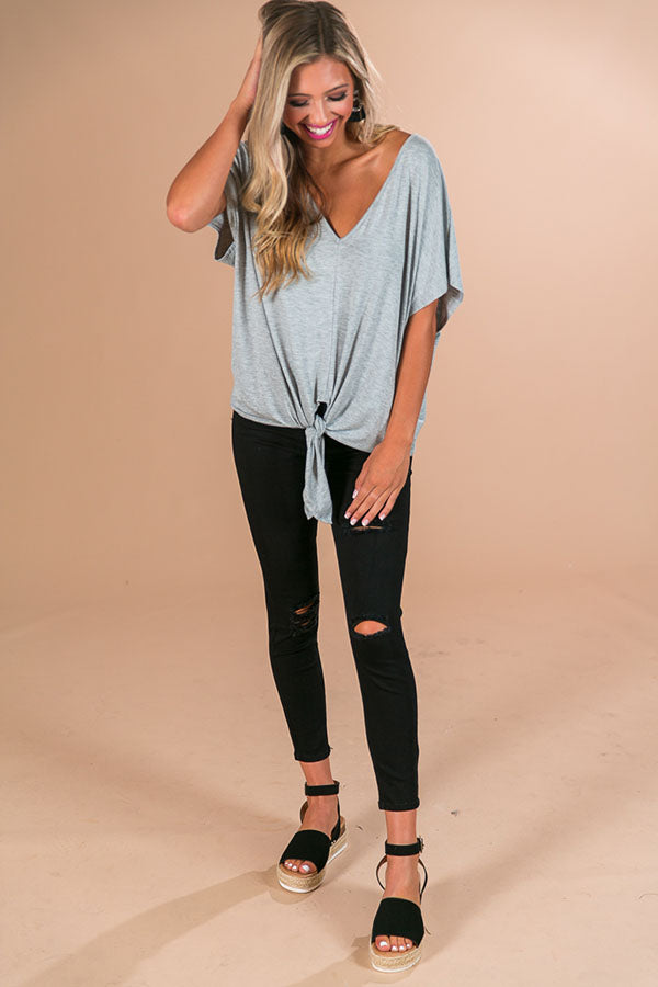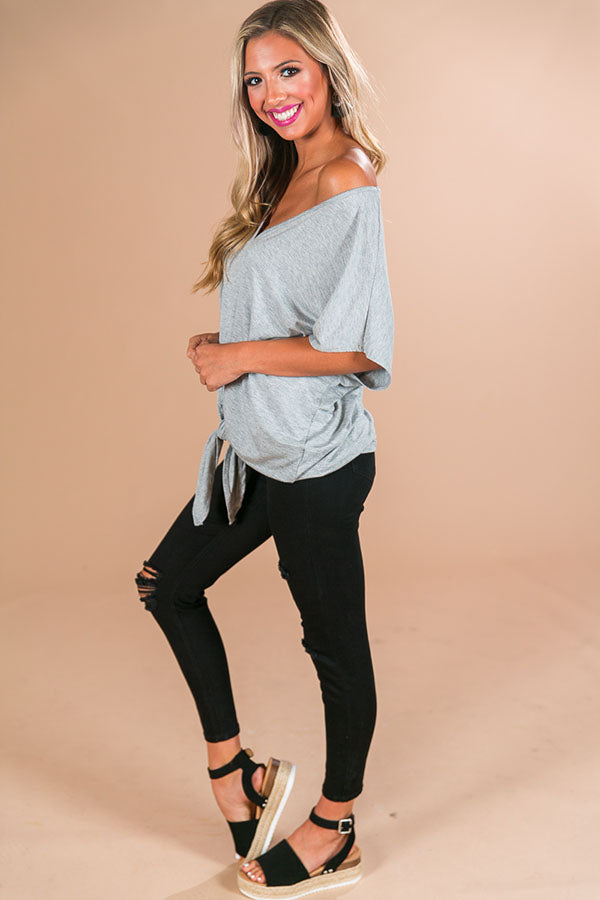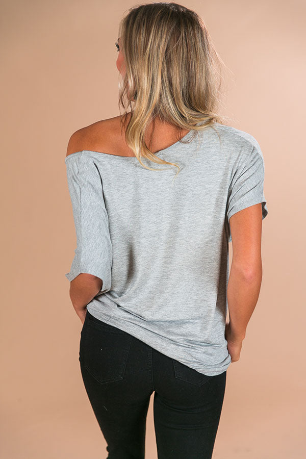 Shift into "casual cute" mode easily with the "Monaco Shift Tee!" This basic everyday babe has a slouchy v-cut neckline that can easily be taken off the shoulder, short sleeves & a relaxed jersey rayon bodice with a trendy tie bottom hem. Complete your look with your favorite distressed denim & a flatform sandal for a comfortably chic look in minutes!