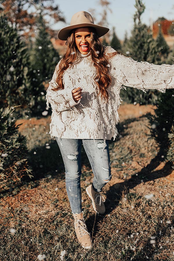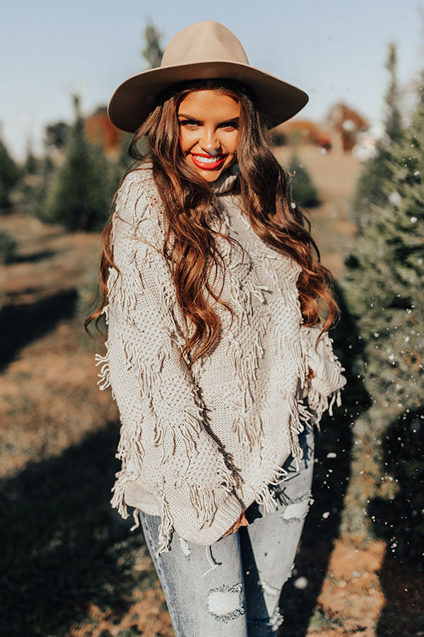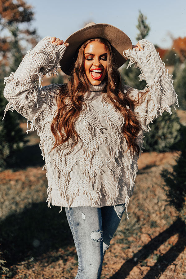Mood Booster Fringe Sweater In Grey