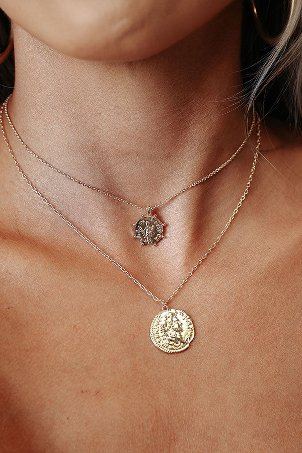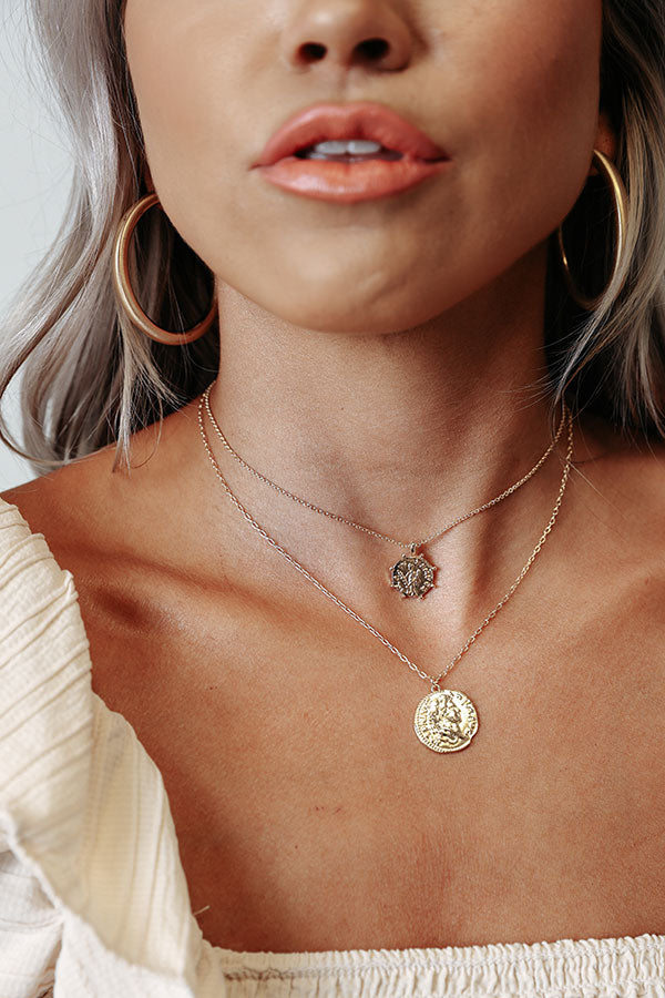 Add a subtle shine to your look by accessorizing with our trendy gold 'Moon Phase Necklace' featuring two dainty layered chains with coin pendants!