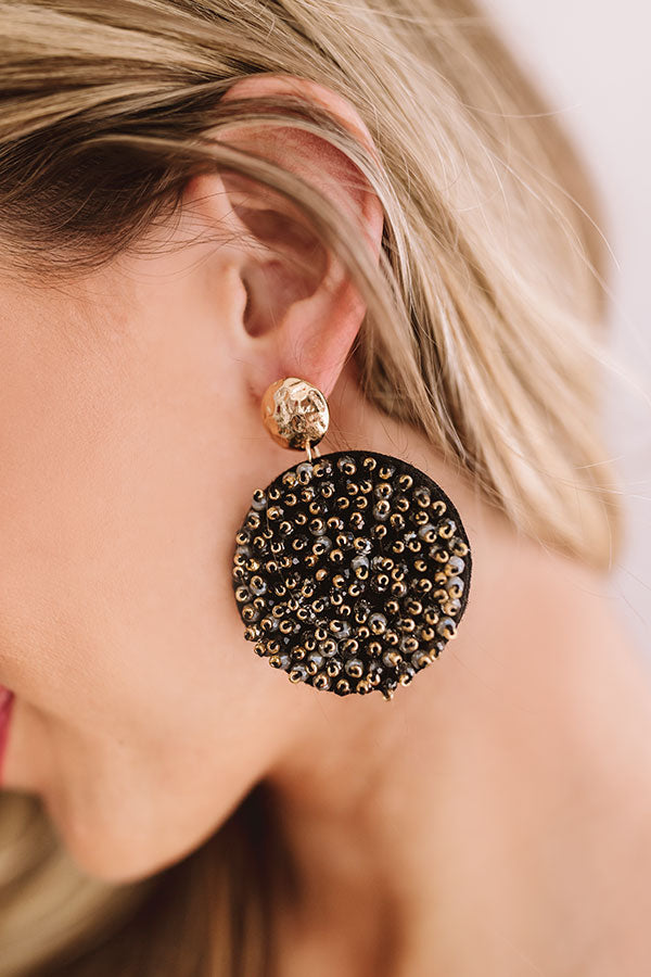 These statement earrings will capture all those "moonlight kisses" with their textured gold studs and large black beaded circles!