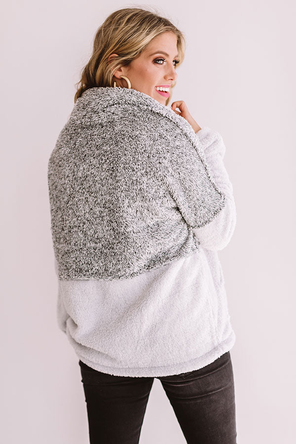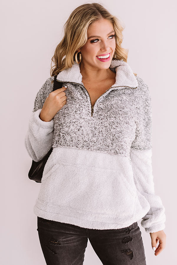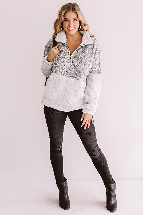 As the temperature starts dropping, rise to the occasion in style with the "More Lattes, Please Sherpa Pullover" featuring a grey zip up bodice with a high thick collar, long loose sleeves, a large front pouch, and a straight hemline that can be cinched in tighter! This ultra warm fall piece can be dressed up with some distressed black skinnies, black close toe booties, and a trendy black backpack, or you can dress it down with our "Trendsetter Mineral Wash Jogger in Airy Blue," a beanie, and "The Adrian Sneakers in Grey!" Measurements