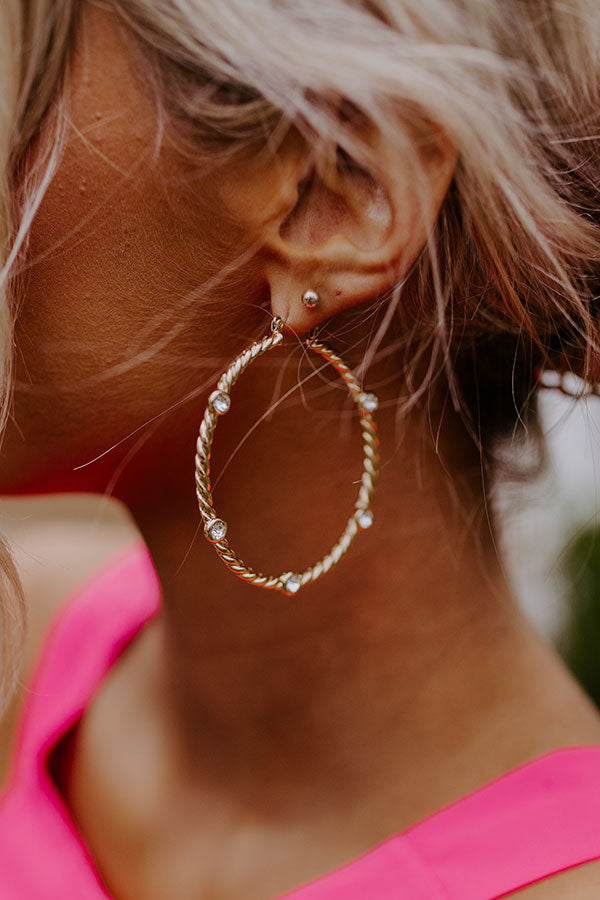 Accessorize luxuriously with our 'More To The Story' earrings featuring gold twisted hoops with rhinestone accents!