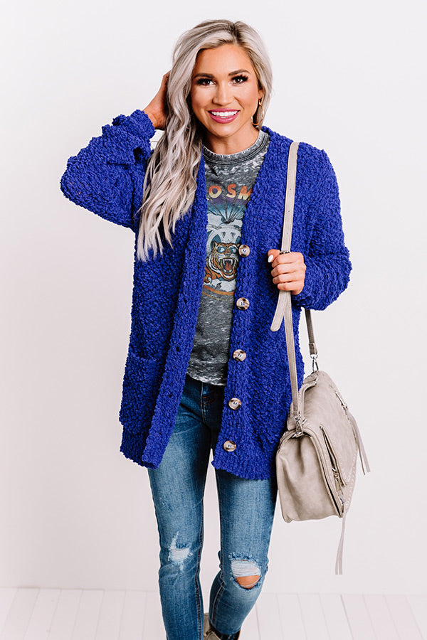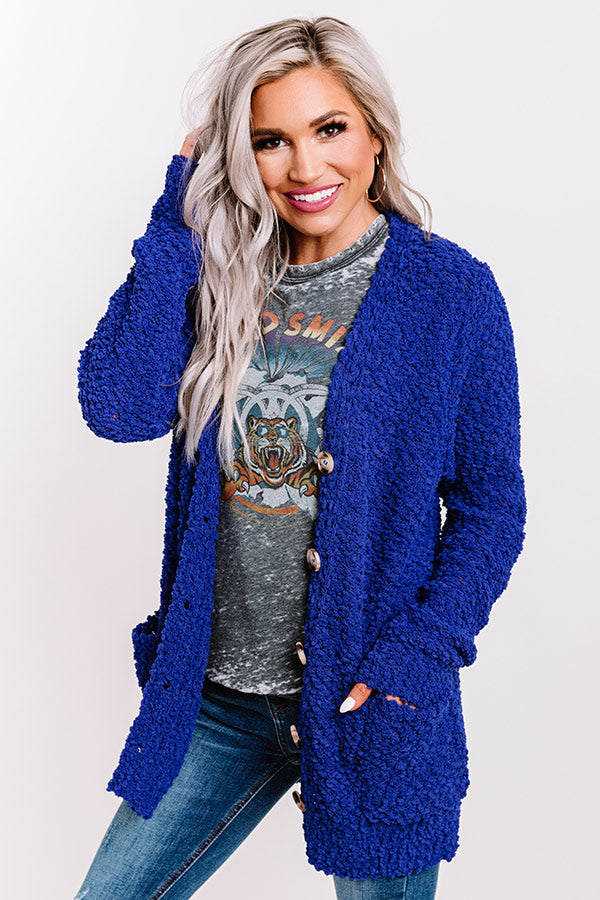 Morning Chill Popcorn Knit Cardigan in Royal Blue