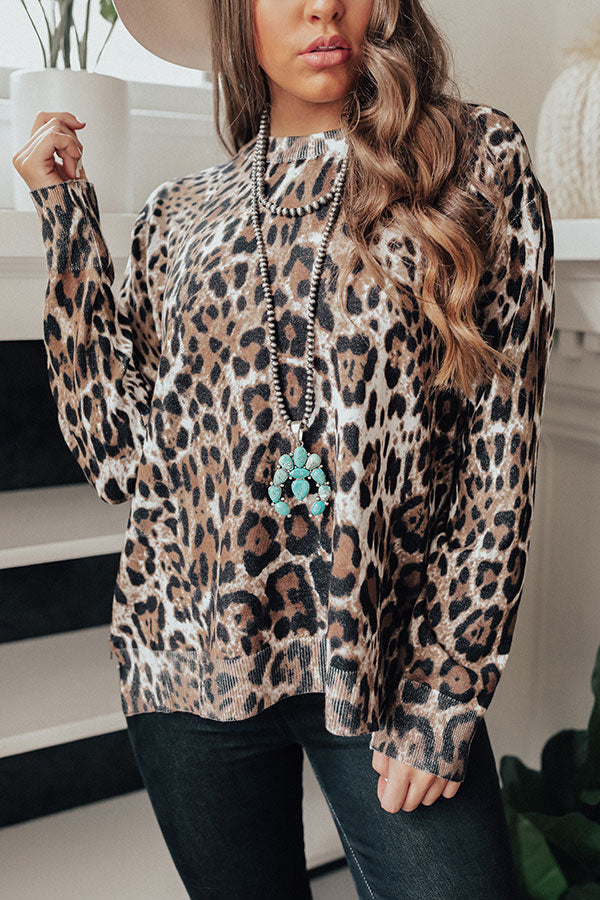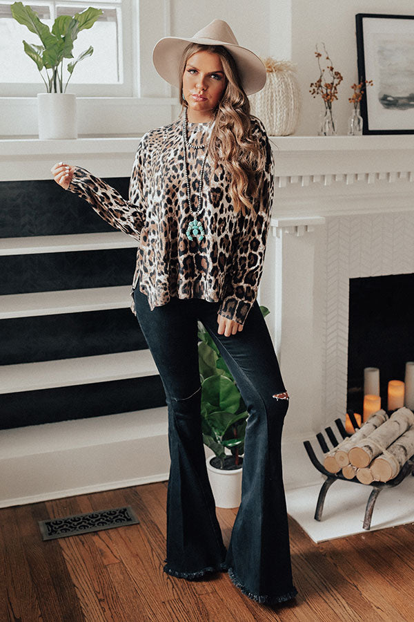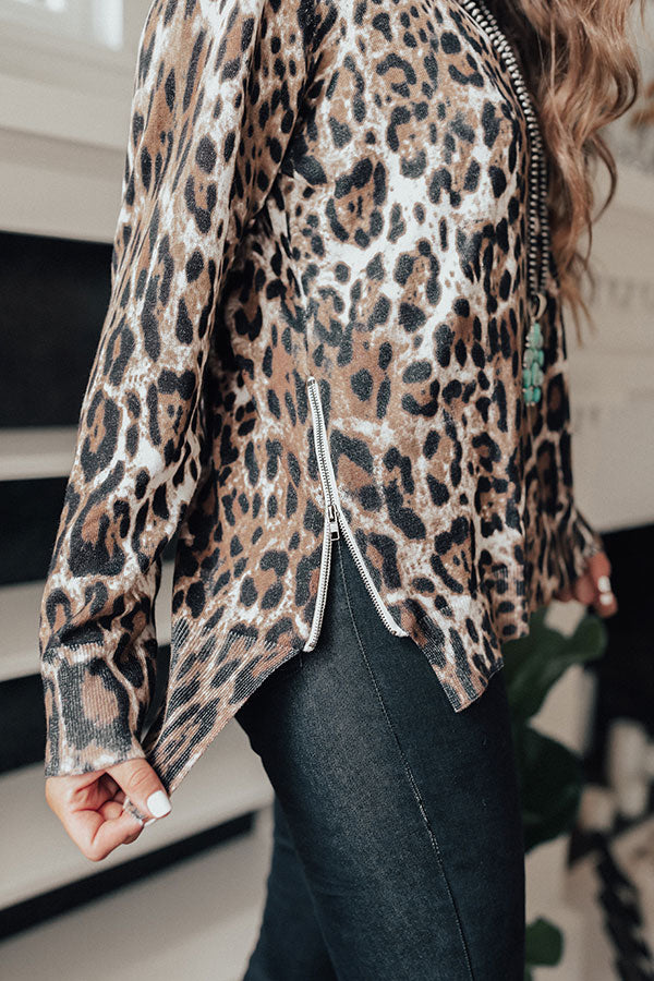 Show off you fierce side this fall with the "Morning Light" shift top featuring lightweight tight knit material with a bold black and brown leopard print, a high rounded neckline, ribbed trim detailing, long semi-fitted sleeves, and a relaxed silhouette that falls into an uneven hemline with zip closure side slits! You can style this piece a variety of different ways, like with some dark wash flares and a matching faux suede hat, or you can wear it with our "Weekend In NYC Ribbed Velour Skirt in Black," a neutral tote, and "The Aspen Thigh High Lace Up Boot in Taupe!"