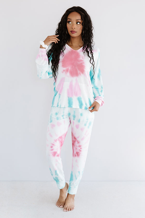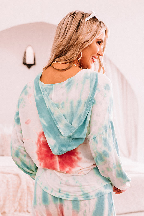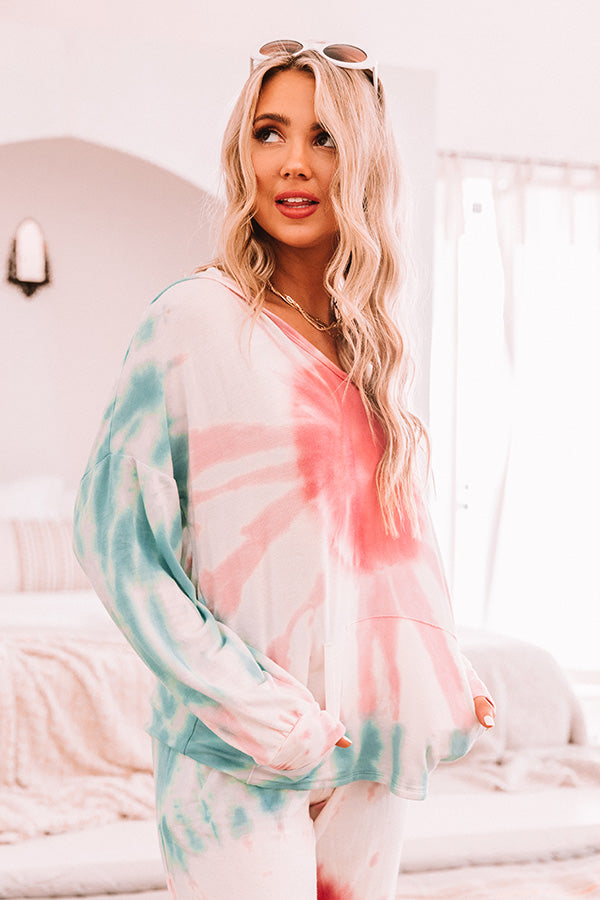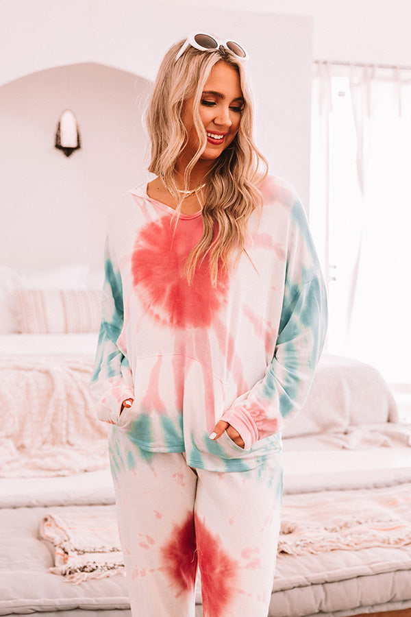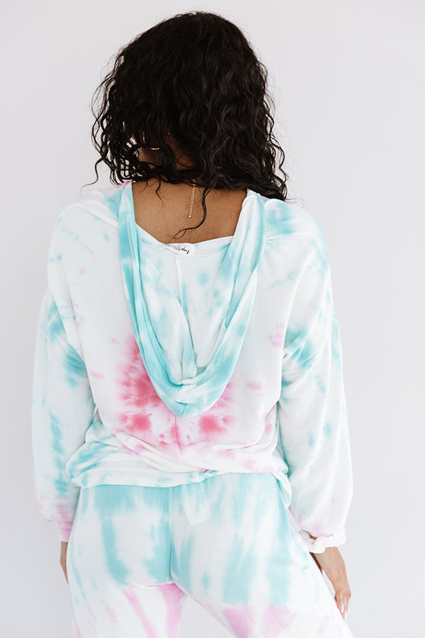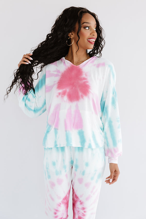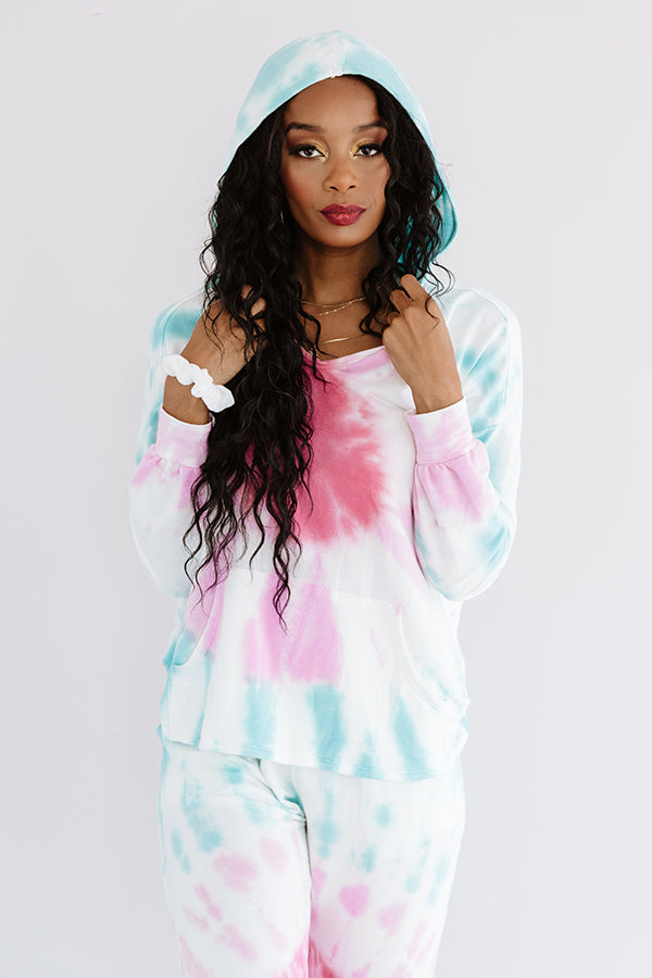 This adorable hoodie will make every morning better with its ultra soft lightweight material patterned with pink and turquoise tie dye, high neckline with a hooded back, long loose sleeves, large kangaroo front pocket, and relaxed silhouette that falls into a straight hemline!