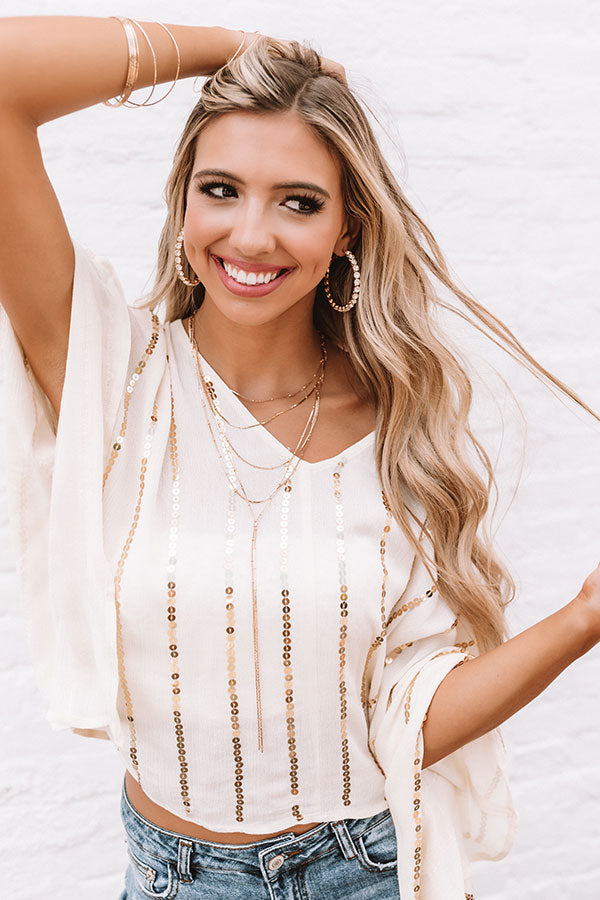 Wear your money where you can see it...around your neck with the "Moroccan Moment" statement necklace featuring five layered dainty gold chains with an adjustable range of 13-18 inches!