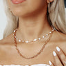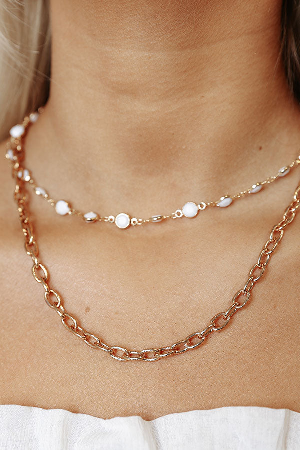 We have no doubt you will crush on this darling necklace featuring two layered piece: a white bead choker and a longer gold link chain! Due to this being a natural stone size and color may vary.