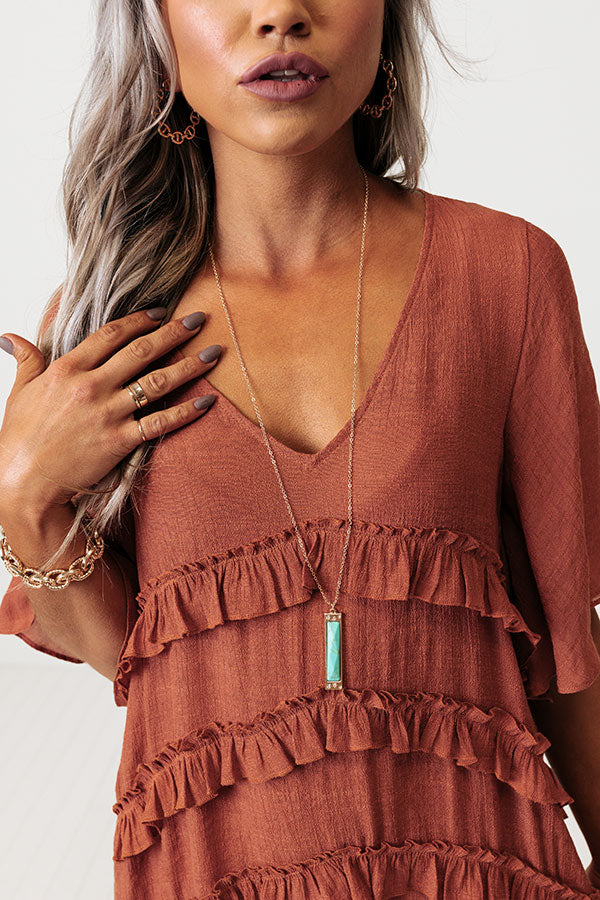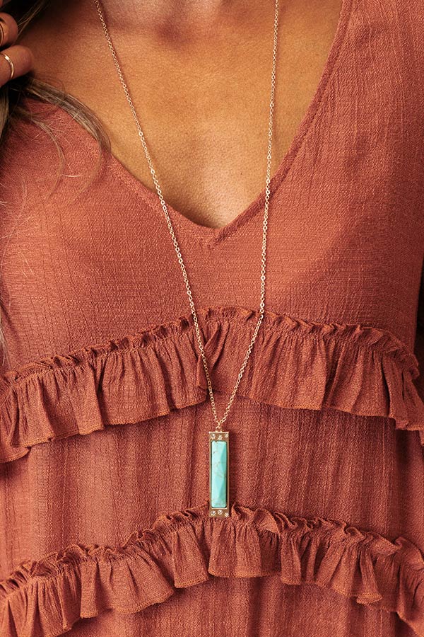 We have no doubt you are likely to fall in love with this adorable necklace featuring a long dainty gold chain with a skinny turquoise rectangle pendant!