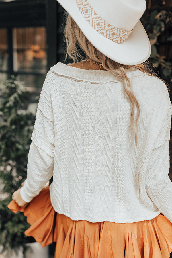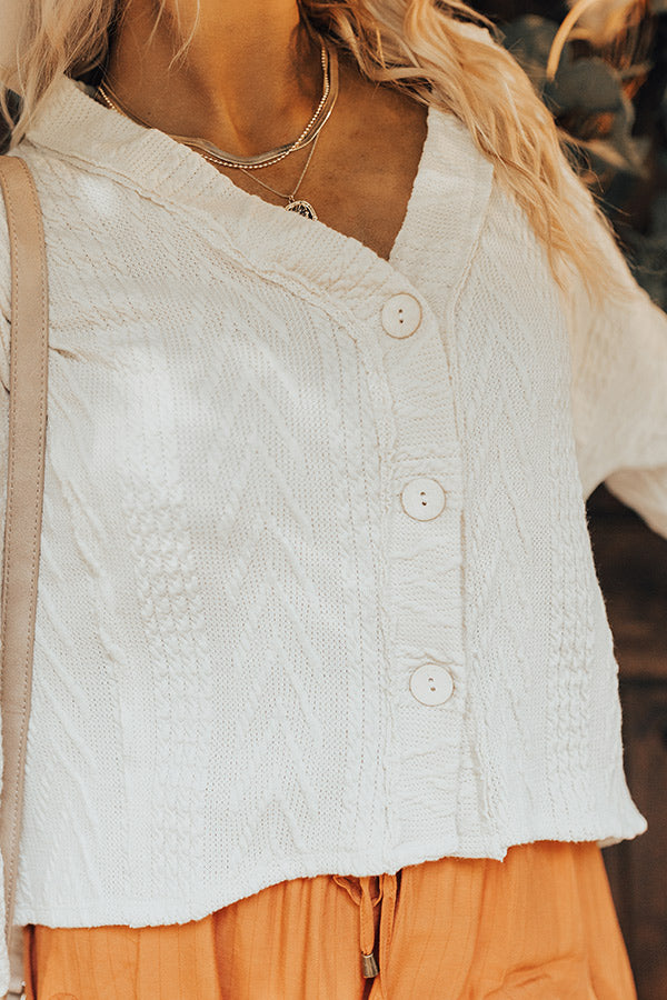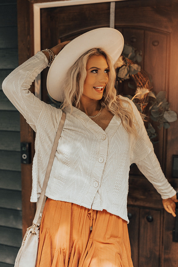 Upgrade your fall wardrobe with our versatile ivory colored 'Mountain Moves Cardigan' featuring soft material with unique knit texturing, a button down front with a v-cut neckline, long loose sleeves, and a relaxed silhouette that falls into a straight hemline! Plus, it can be styled solo as a top or layered as a cardigan! Measurements