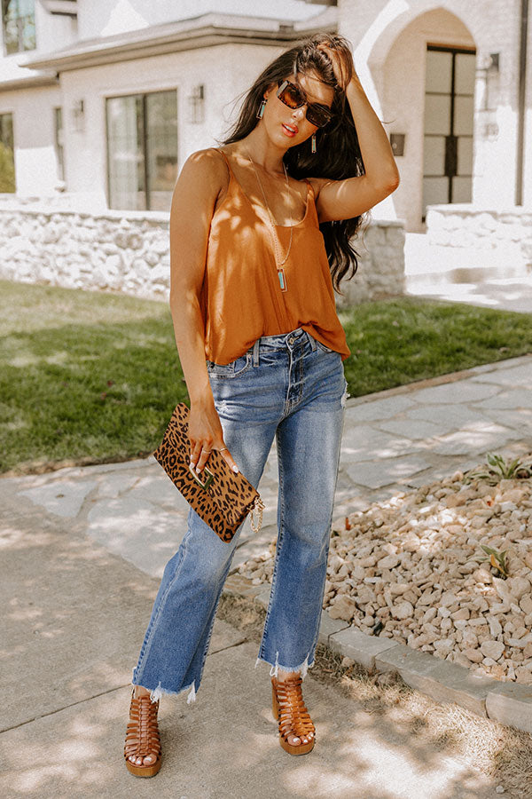 The upgrade your summer wardrobe basics have been asking for, our simple camel colored 'Move On' shift tank features lightweight material, a scooped neckline and upper back, adjustable spaghettis traps, and a relaxed silhouette that falls into a straight hemline!