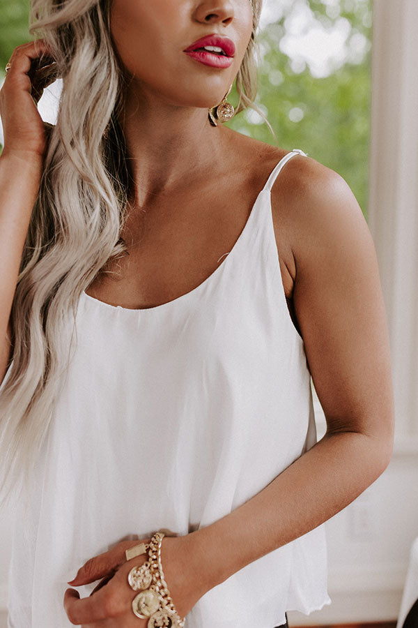 The upgrade your summer wardrobe basics have been asking for, our simple white 'Move On' shift tank features lightweight material, a scooped neckline and upper back, adjustable spaghettis traps, and a relaxed silhouette that falls into a straight hemline!