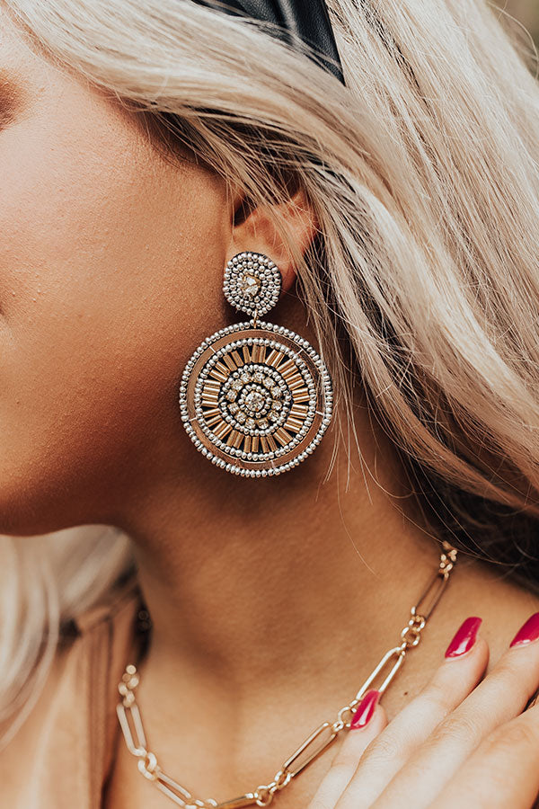 Dance to the beat of your own tune with our gorgeous 'Music Row' statement earrings featuring beaded circle studs and larger dangling camel hued intricately beaded circles!