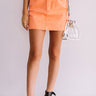 We know you will be obsessed with the orange 'My Alma Mater' denim skirt featuring a ruffled waistline, a straight fit, 5 pocket cut, belt loops, and hidden zipper with a button closure!