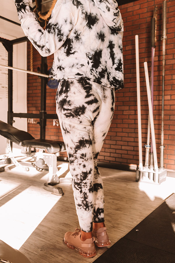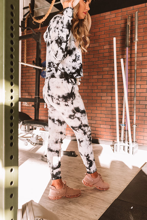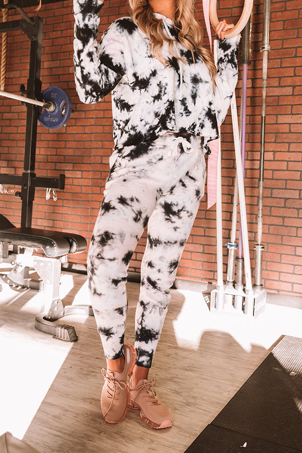 Put your best foot forward in these adorable white joggers featuring soft lightweight material patterned with navy/black hued tie dye, a wide elastic waistline with a tie belt, accent side pockets, and a slouched pants silhouette that tapers into fitted ankle-length hemlines! Due to manufacturing there may be variations in the tie dye pattern.