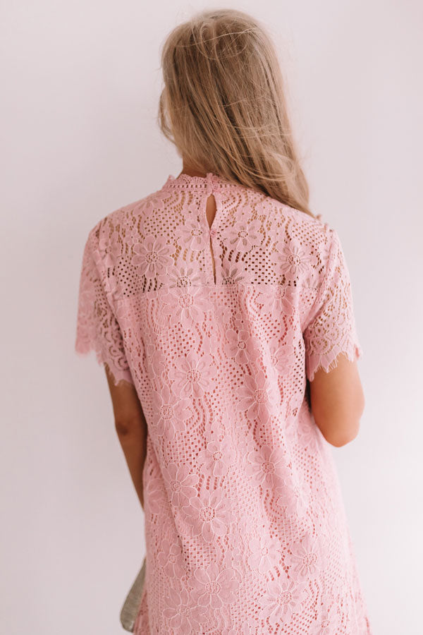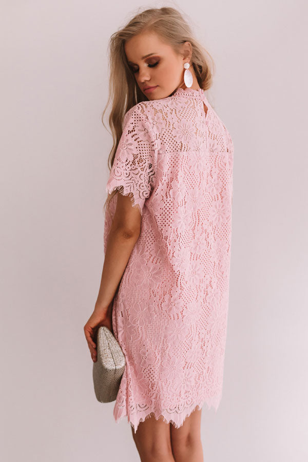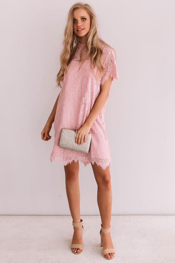 The color of perfection is pink, so its no surprise that this lace shift dress is the perfect summer luncheon piece! It hits at mid thigh and has three buttons in the back! Pair it with a nude heel and clutch for a dainty tea party outfit! Measurements