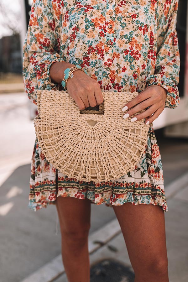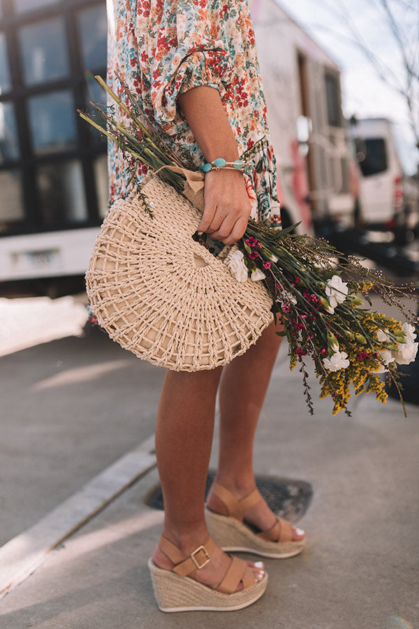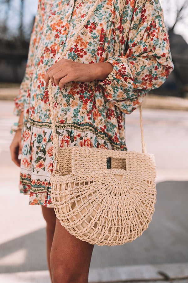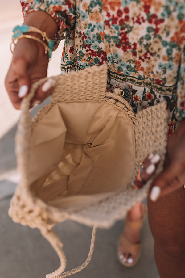 Perfect for warmer months, our cute ivory 'Myrtle Beach' crossbody features lightweight woven material in a half-circle silhouette, two square handles, a shoulder strap, and a spacious fully lined interior with a zip closure!