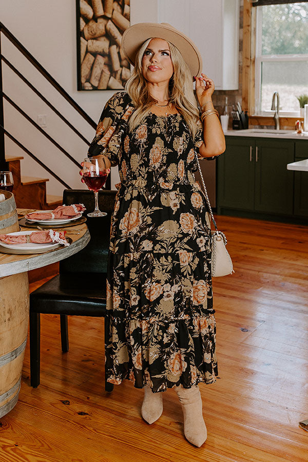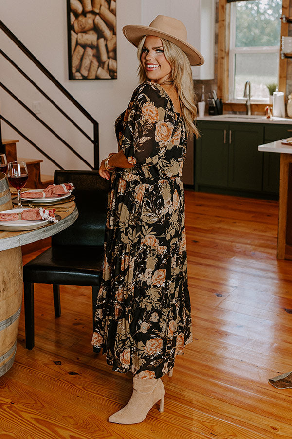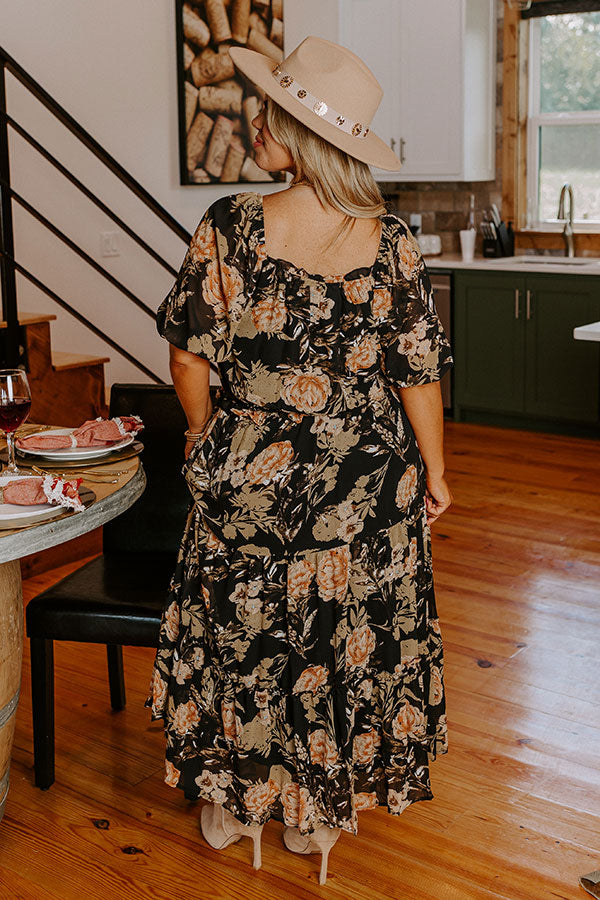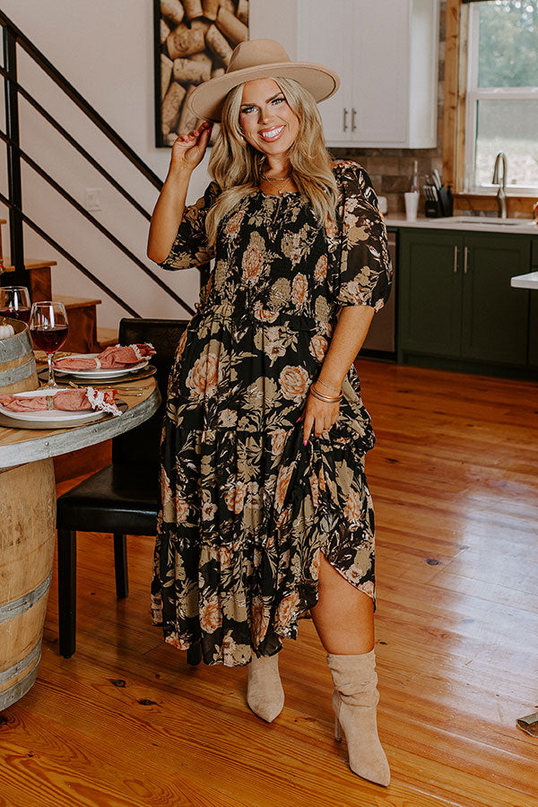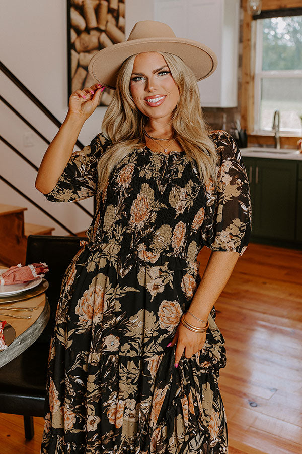 - A flowy, tiered silhouette that ends in a ruffled midi length hemline