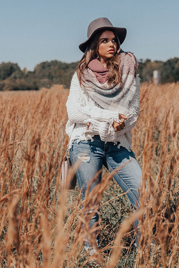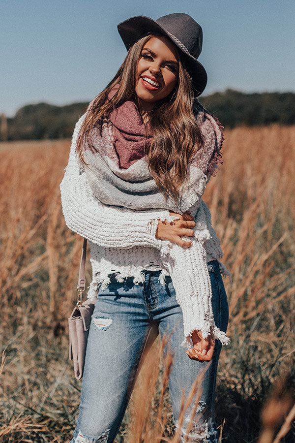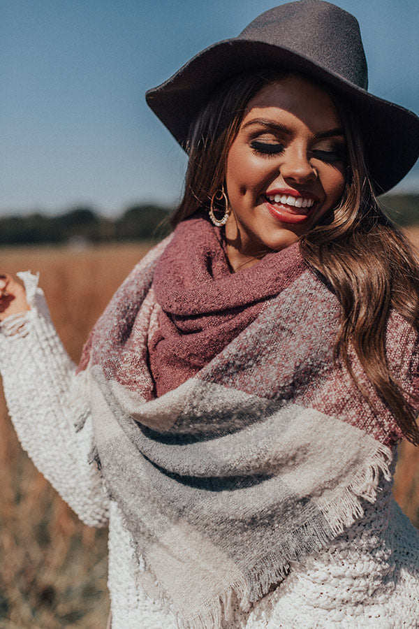 Add a little extra warmth to your fall OOTD with our purple colored "Name Dropper" blanket scarf featuring soft lightweight tight knit material, an adorable plaid pattern, and fringed trim detailing!