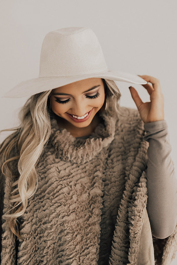 People will be dropping your name to call you a fashionista after you wear this stone hat with its faux suede material and wide brim!