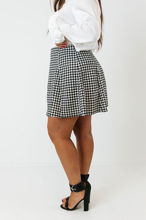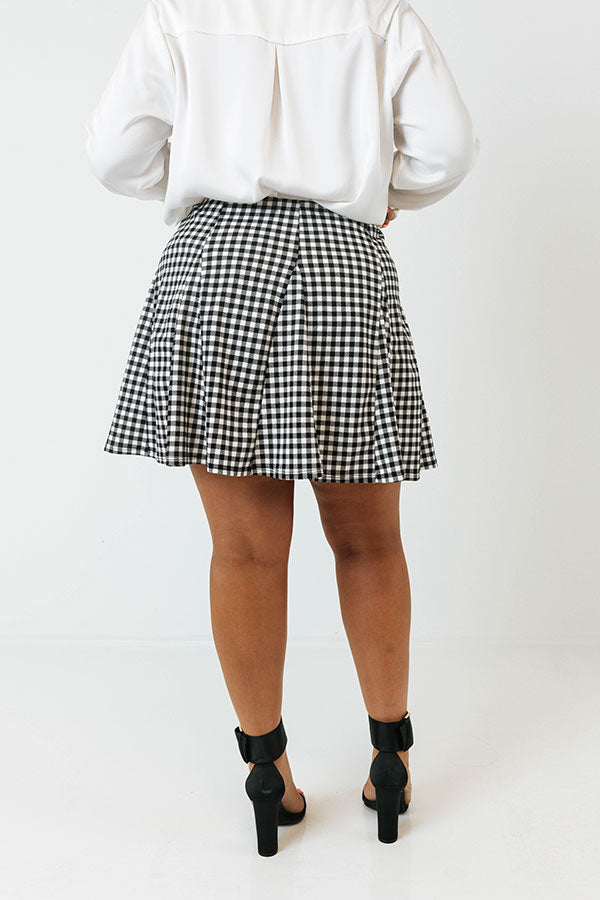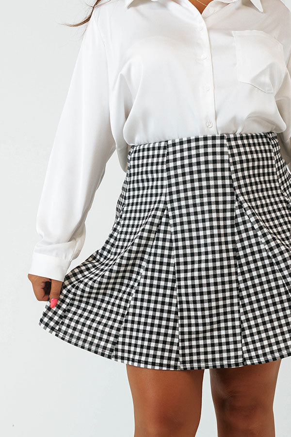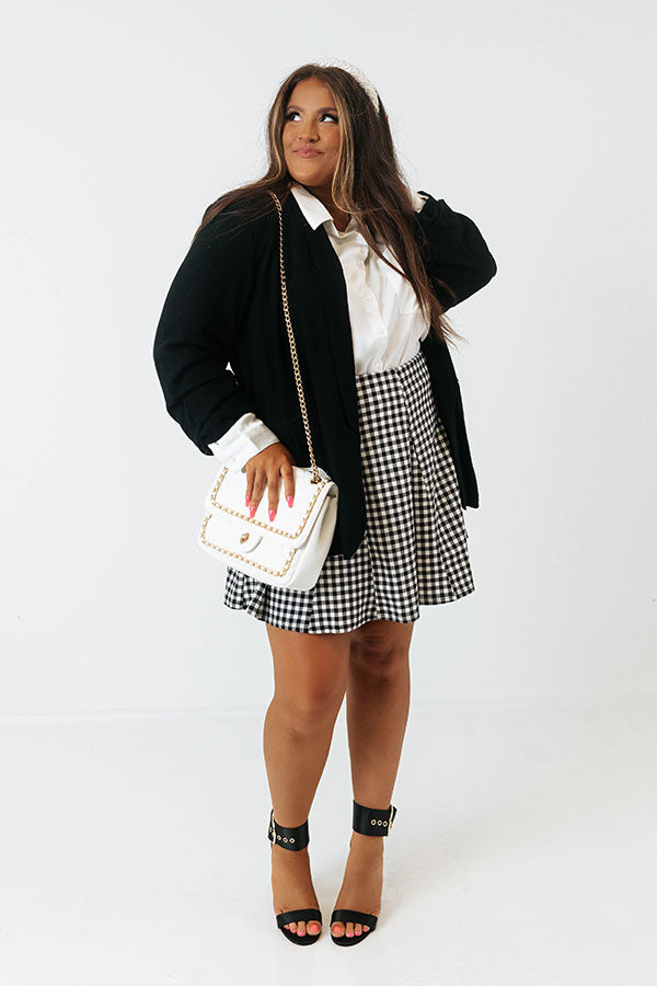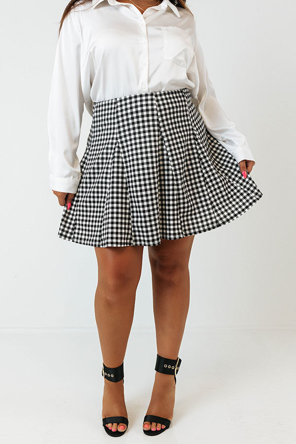 You are sure to look sophisticated yet stylish in our adorable plus size 'Name Of The Game' skirt featuring lightweight material patterned with a small black and white plaid print, a high waistline, and a relaxed pleated silhouette that ends in a straight mid-thigh length hemline!