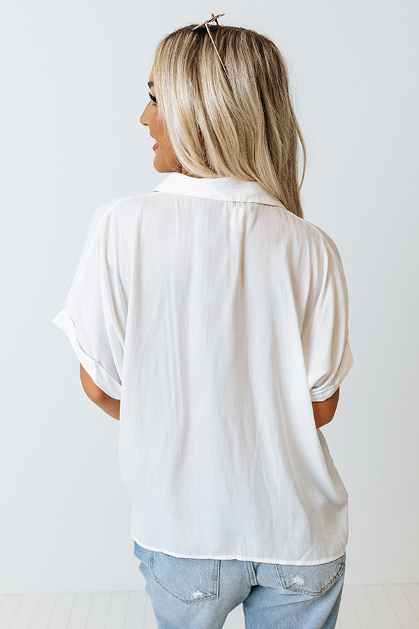 A classic fit, our timeless ivory 'Name Of The Game Shift Top' featuring lightweight material, a button down front with a collared v-cut neckline, loose short sleeves with rolled cuffs, a single accent chest pocket, and a relaxed silhouette with a straight hemline!