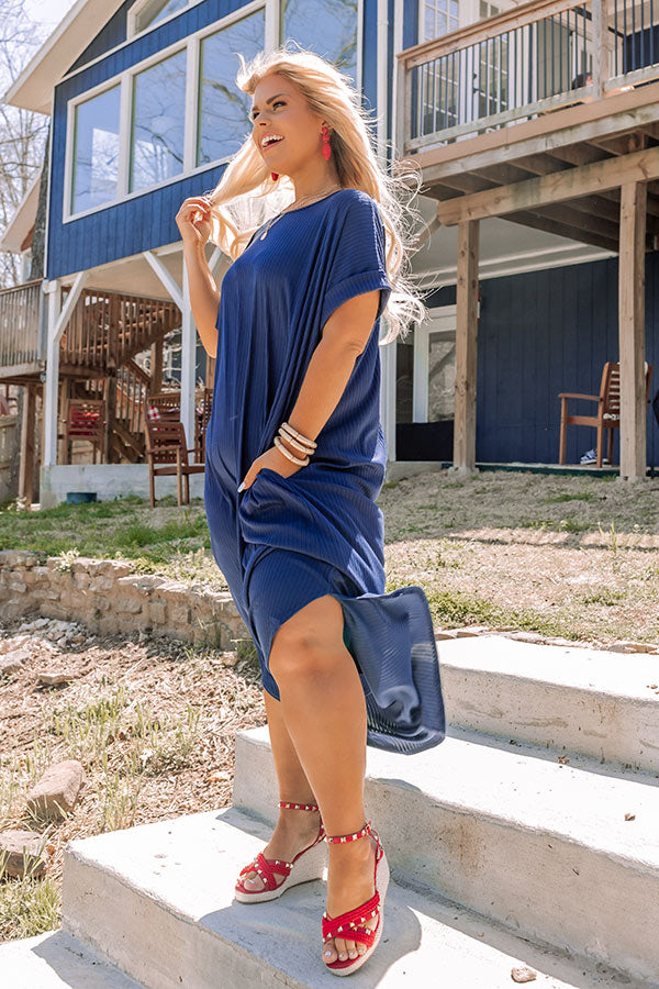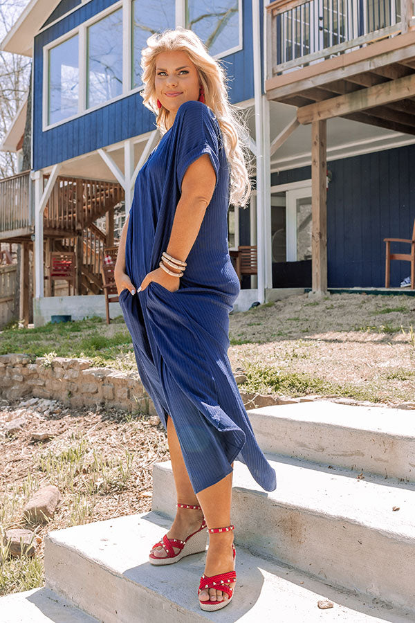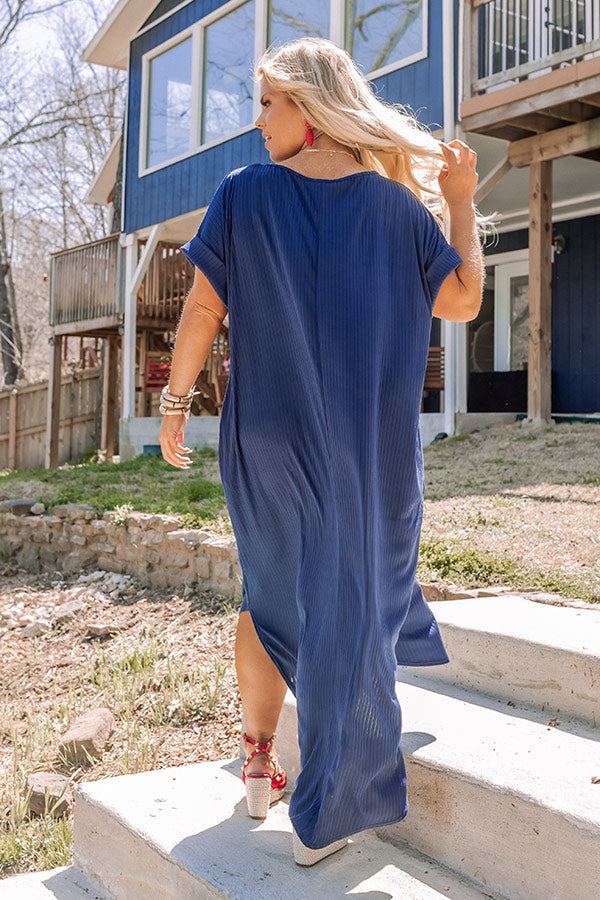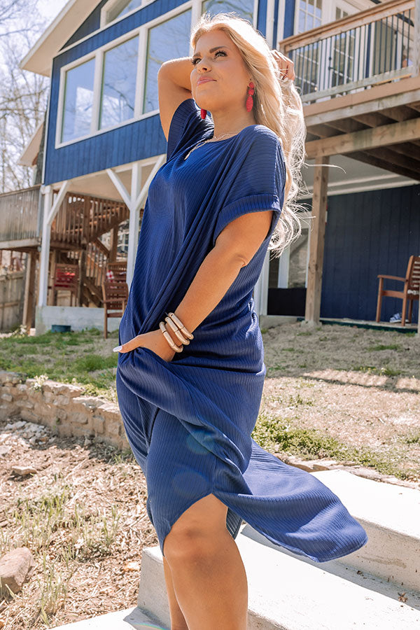 There is no better piece to throw on and go with than our comfy casual navy plus size 'Nap Until Noon' maxi dress featuring soft and lightweight cotton-blend material, a rounded neckline, short sleeves with rolled cuffs, hidden side pockets, and an ultra slouched t-shirt silhouette that falls into a rounded ankle-length hemline! on products