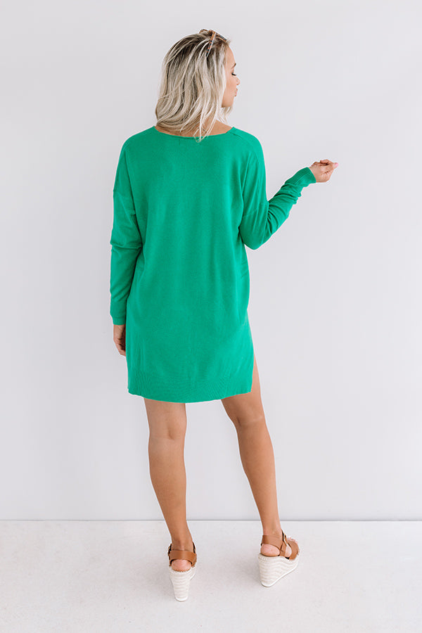 It's undoubtedly a "great idea" to add this adorable kelly green shift tunic to your cart with its soft lightweight material, a wide v-cut neckline that can be worn off one shoulder, long loose sleeves, and an ultra relaxed silhouette that falls into a straight upper thigh length hemline with high accent side slits! You can style this spring cutie a variety of ways, like with some frayed denim shorts, sunnies, cinnamon wedges, and a brown crossbody, but you can also wear it with some frayed white skinnies, "The Ayla Wedge in Leopard," and our "Leopard Forever Headband!" Measurements