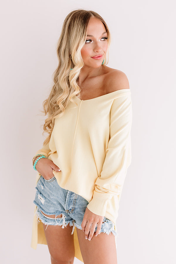 It's undoubtedly a "great idea" to add this adorable yellow shift tunic to your cart with its soft lightweight material, a wide v-cut neckline that can be worn off one shoulder, long loose sleeves, and an ultra relaxed silhouette that falls into a straight upper thigh length hemline with high accent side slits! You can style this spring cutie a variety of ways, like with some distressed denim shorts and a brown wedge and bucket bag, but you can also wear it with some white flares, "The Melina Heel in White," and our "Quay X JLO Reina Cat Eye Sunnies in Ivory!"