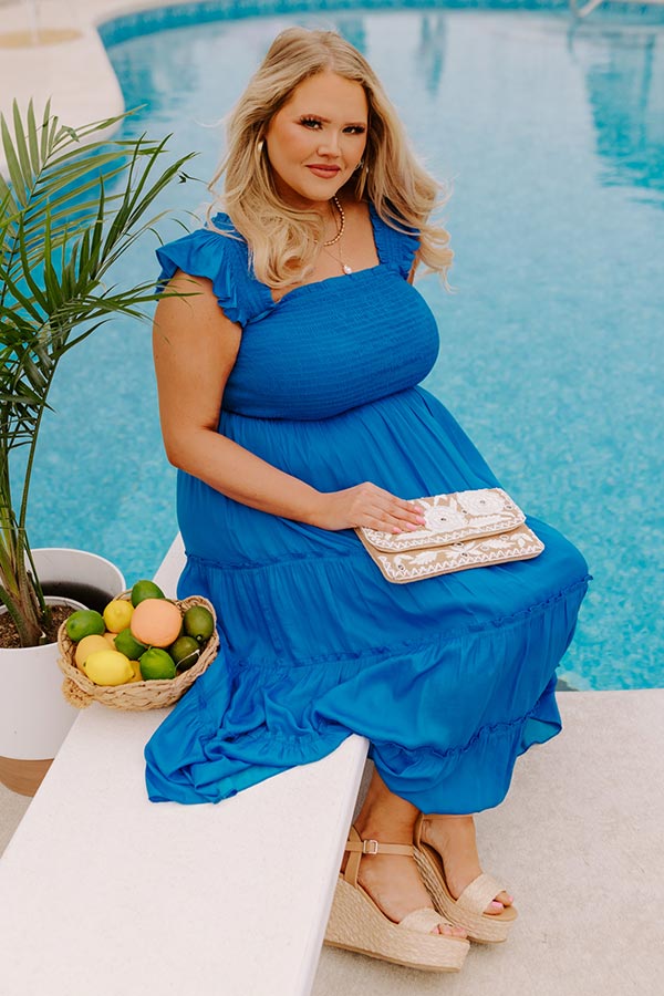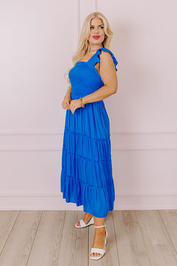 Napa Valley Retreat Smocked Midi In Royal Blue Curves