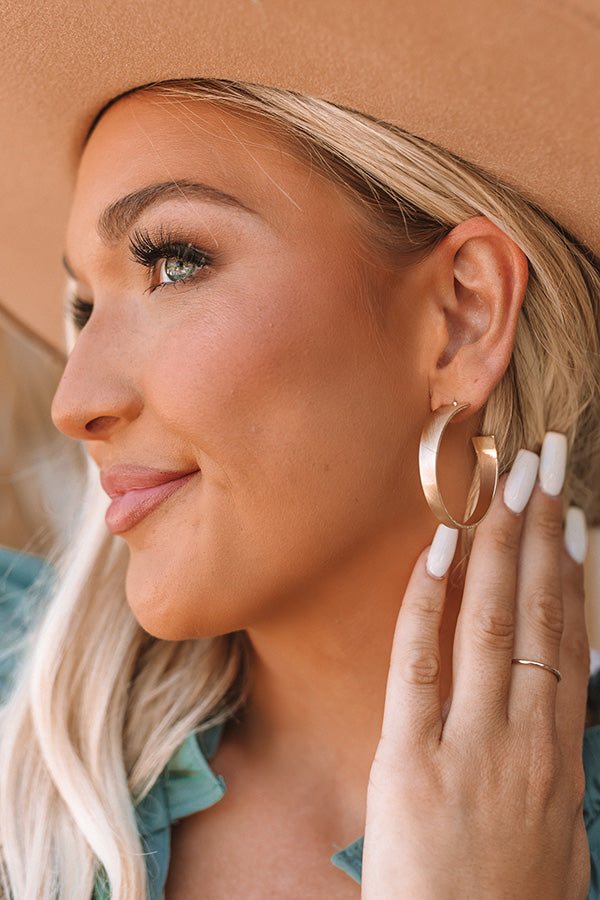 The perfect everyday jewelry piece, our classic 'Nashville Nightlife' earrings feature flat gold open hoops!
