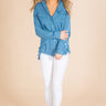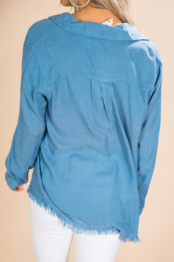 Hey, hey trendsetter! We have the perfect lightweight top for your everyday style! Along with the front pockets detail, this top is complete with a frayed hem detail! Measurements