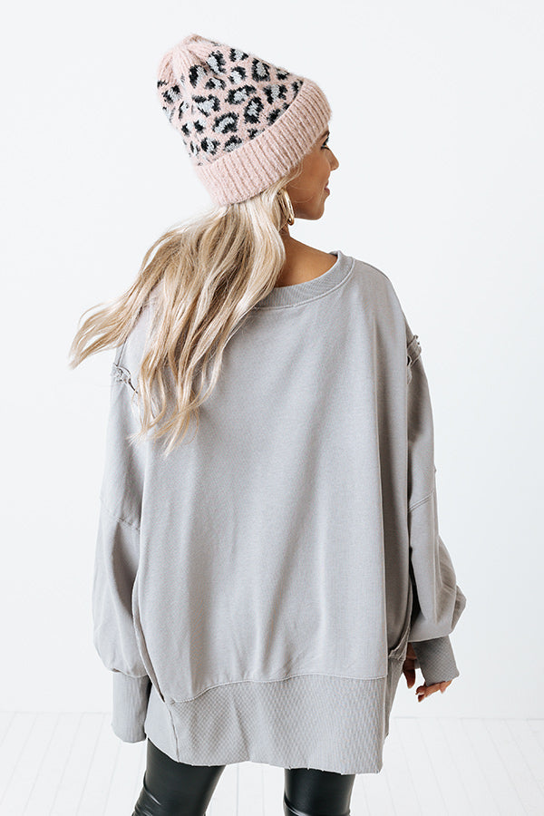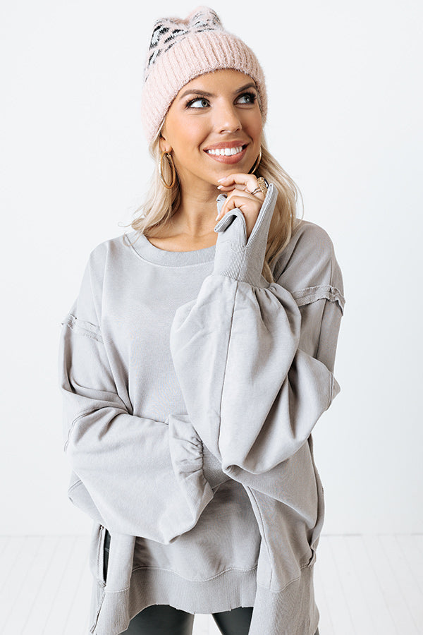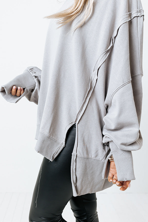 Keep your look simple in our grey 'Never Complicated Sweatshirt' featuring soft and comfy material, a rounded neckline, long loose sleeves with fitted forearm cuffs, and a slouched silhouette that ends in a straight high/low hemline with side slits! Measurements