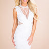 Crochet and lace are a match made in heaven in this sassy & sophisticated LWD! This luxe lace beauty has a high crochet-accented neckline and a fitted crochet silhouette with sheer lace accents throughout.