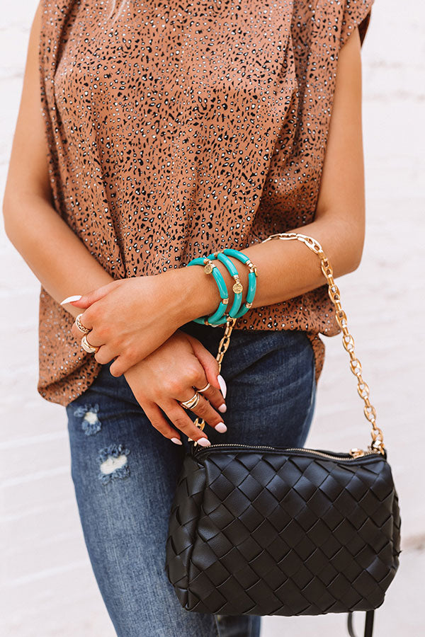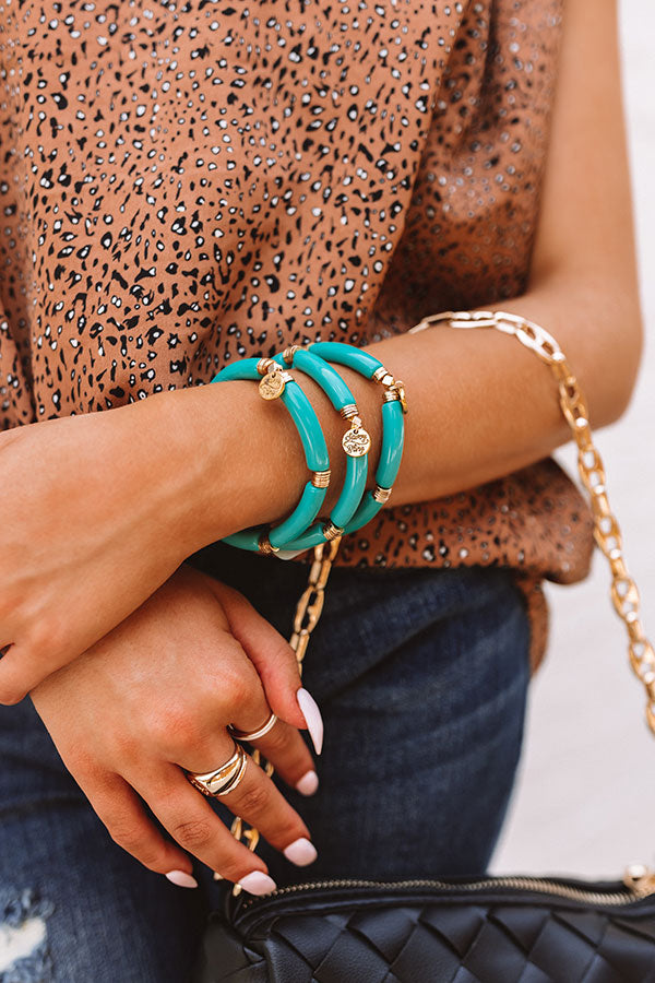 Believe us when we say you won't want to miss out on adding this adorable bracelet to your cart with its turquoise stretch pieces and gold tag accent!