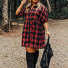 - This beautiful plaid dress has arrived just in time for cider season! - Unlined material with a plaid print - A collared neckline - A button-up front - Short sleeves with elastic cuffs - A relaxed silhouette that ends in a mid-thigh length hemline