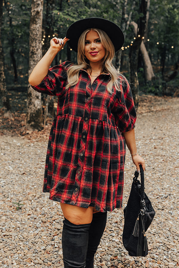 Never Pretend Plaid Dress In Red Curves