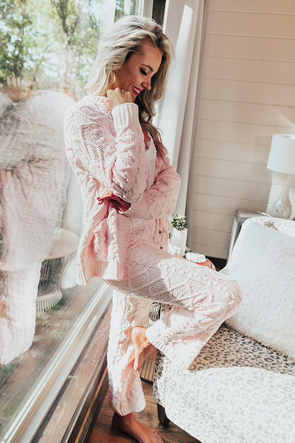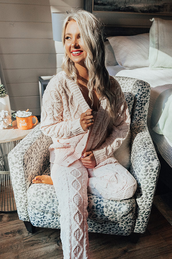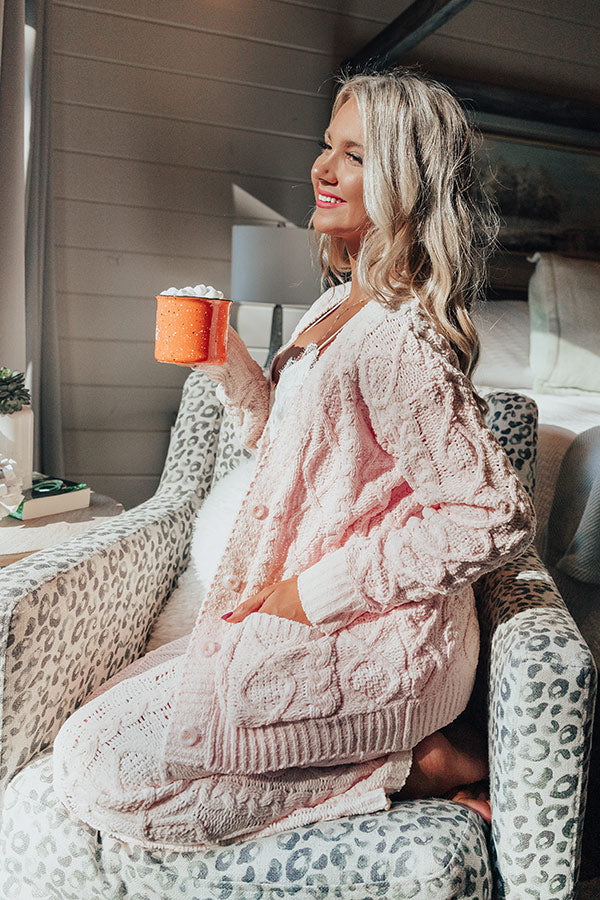 Never Too Cozy Cable Knit Cardigan In Light Pink Image - 1