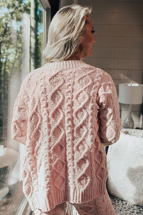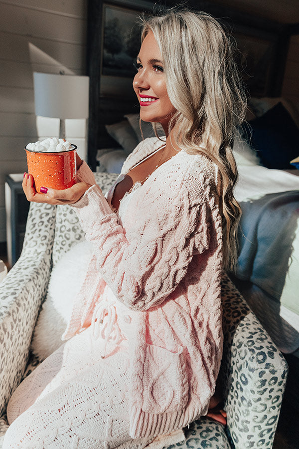 Never Too Cozy Cable Knit Cardigan In Light Pink