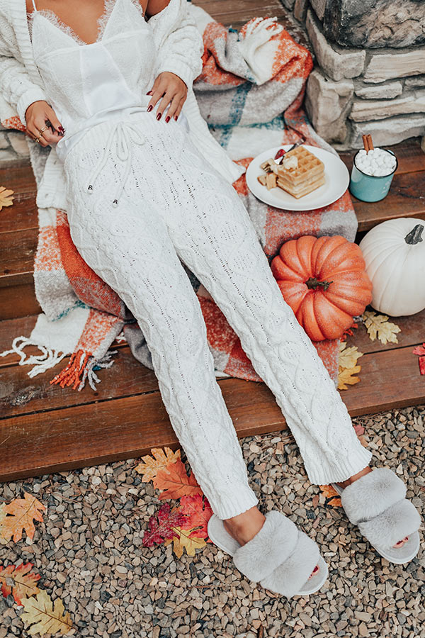 Never Too Cozy Cable Knit Pant In White