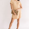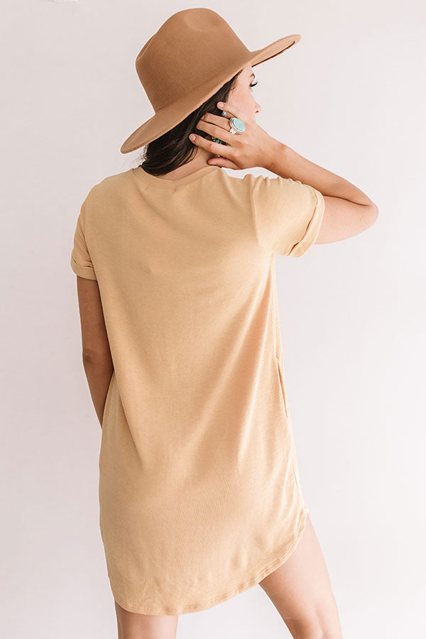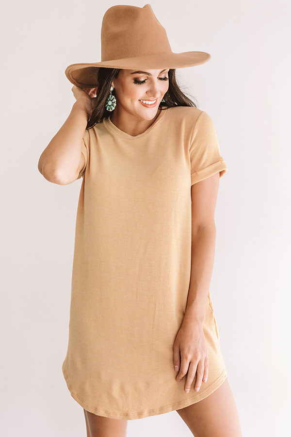 When your are planning a "new adventure" be sure to bring along this golden honey t-shirt dress featuring soft lightweight material, side pockets, rolled short sleeves, and a straight fit silhouette that falls into a rounded hemline! This casual piece will be your go to for those lazy summer days when you style it with a faux suede hat and a leopard bootie and clutch, or you can throw on a pair of fashionable sneakers with it and and a denim jacket and you will be ready to have the ultimate chill time! Measurements