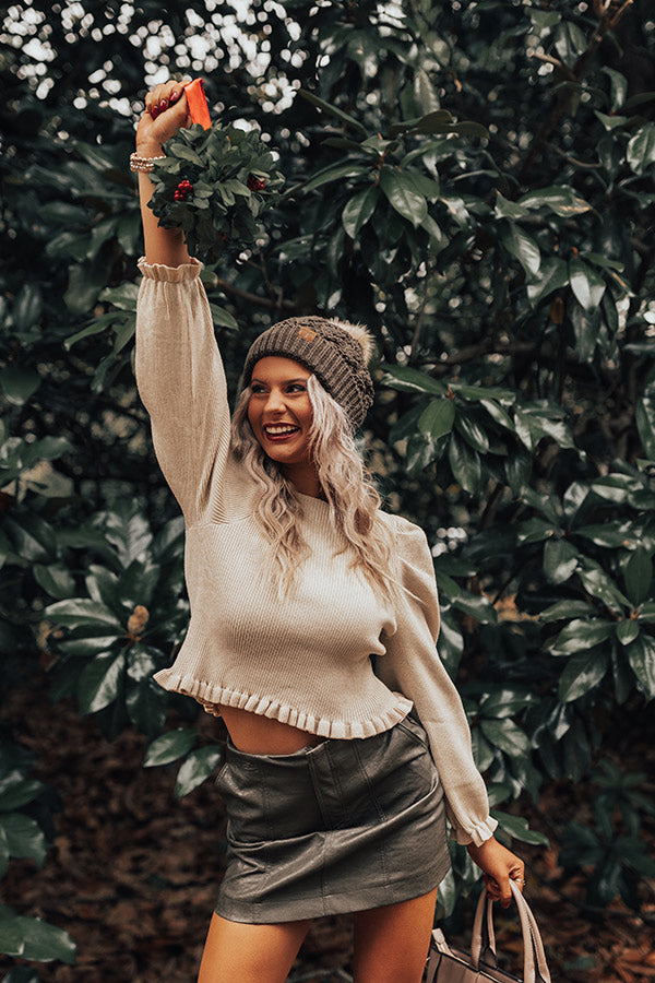 We promise adding this new beige colored top to your cart will be so exciting with its lightweight material, rounded neckline, long loose sleeves, ruffle trim detailing, a cutout upper back with a tie closure, and a flattering silhouette that is sure to turn heads!