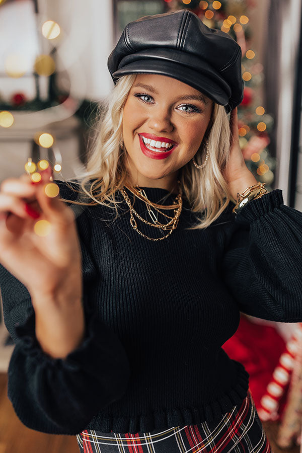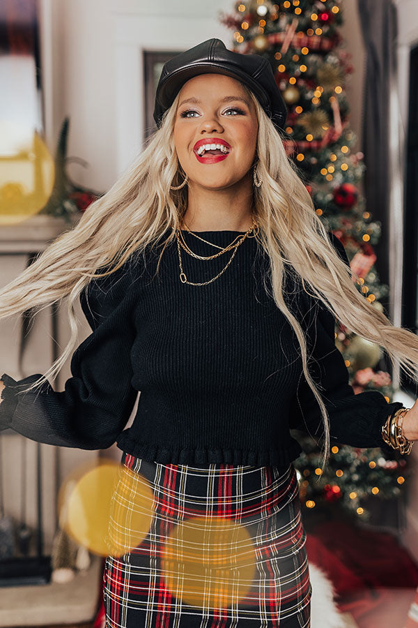 We promise adding this new black top to your cart will be so exciting with its lightweight material, rounded neckline, long loose sleeves, ruffle trim detailing, a cutout upper back with a tie closure, and a flattering silhouette that is sure to turn heads!