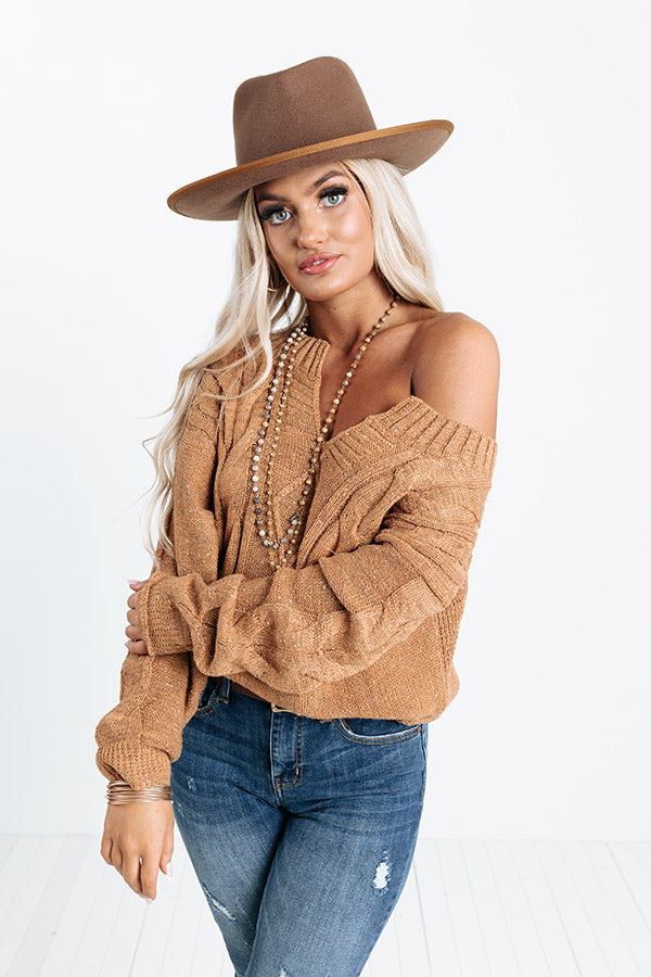Welcome the upcoming season like a true fashionista in our charming khaki colored 'New Haven' sweater featuring soft and warm cable knit material, a flirty split-neckline, long loose sleeves, and a slouched silhouette that falls into a straight hemline!