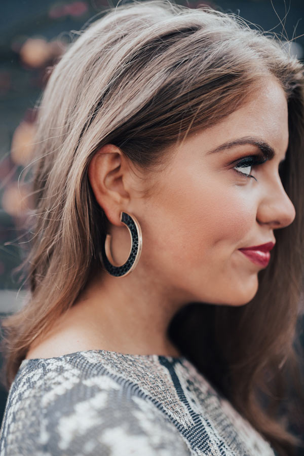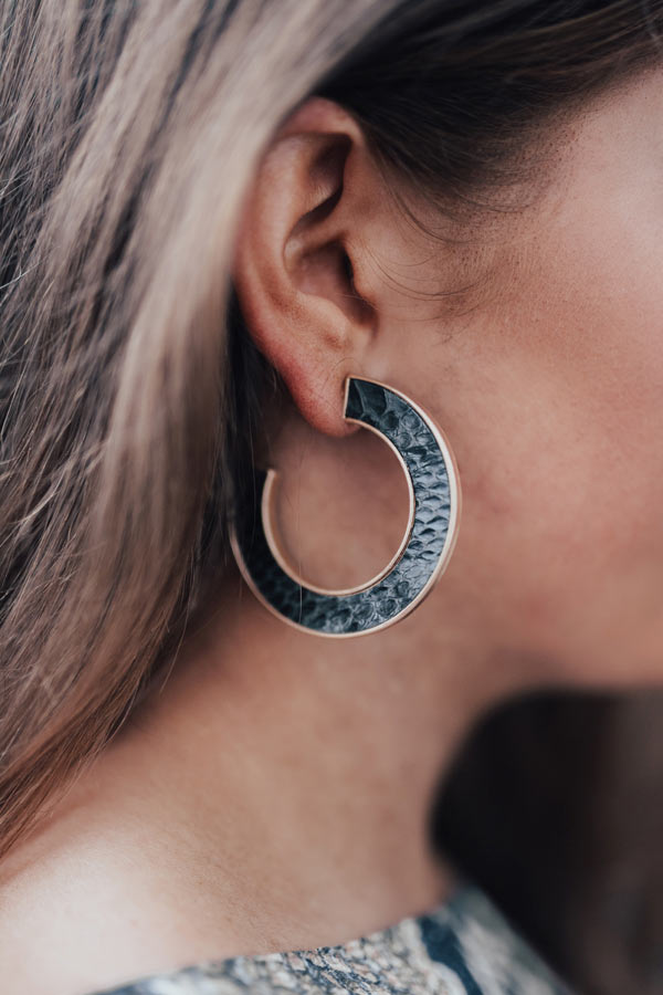 Your jewelry style will be taken to "new heights" when you accessorize with these adorable statement earrings featuring wide open silhouette hoops patterned and textured with black snake print!